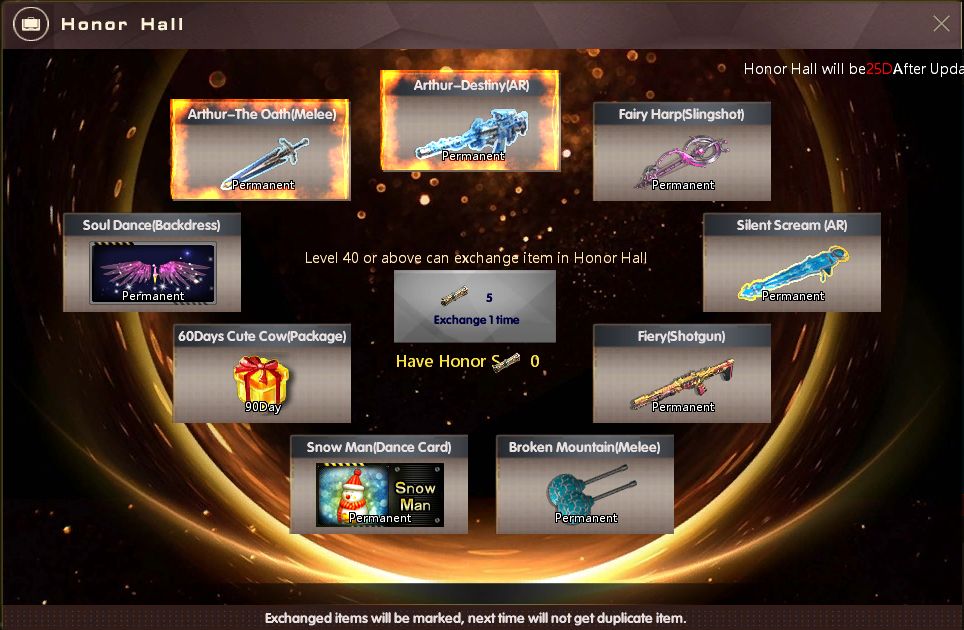 • [Daily Kill Reward] Kill 30 people in all PVP modes every day – Reward: 1 Obsidian (gift pack) + 20 Time Appointment(Fragment)+ 1 Honor Scroll