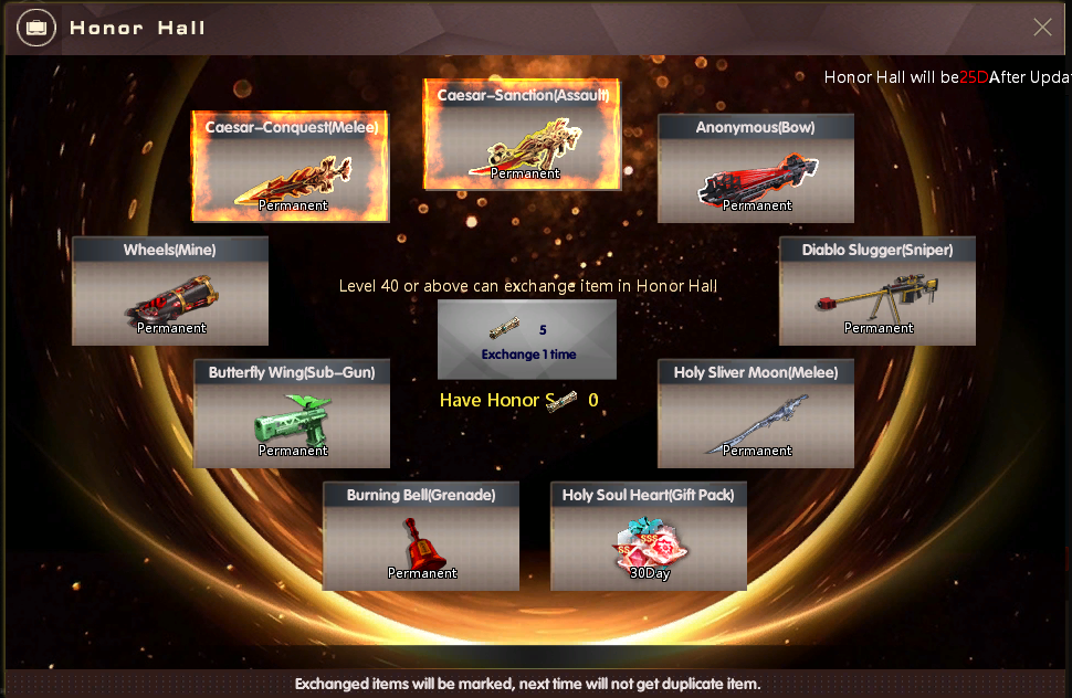 • From September 22nd to October 19th at 24:00, win 1 round in Bomb Mode and you will receive 4 Nightfall (Fragment) + 1 Honor Scroll.