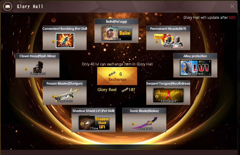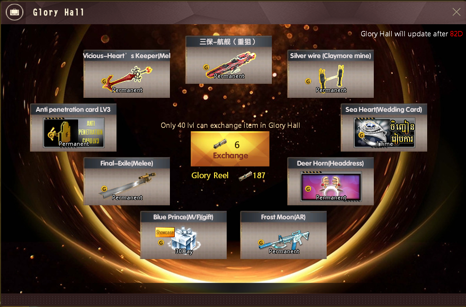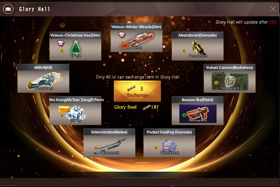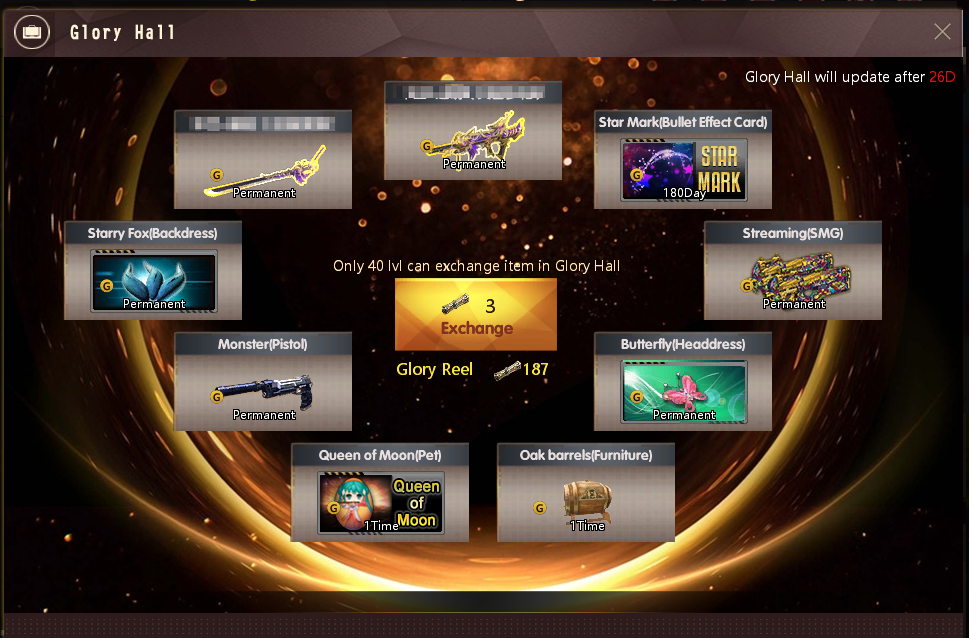 Bullet Hell(GiftPack) Open will get 1 Bounty Token (Exchange Point) and one of the following items: