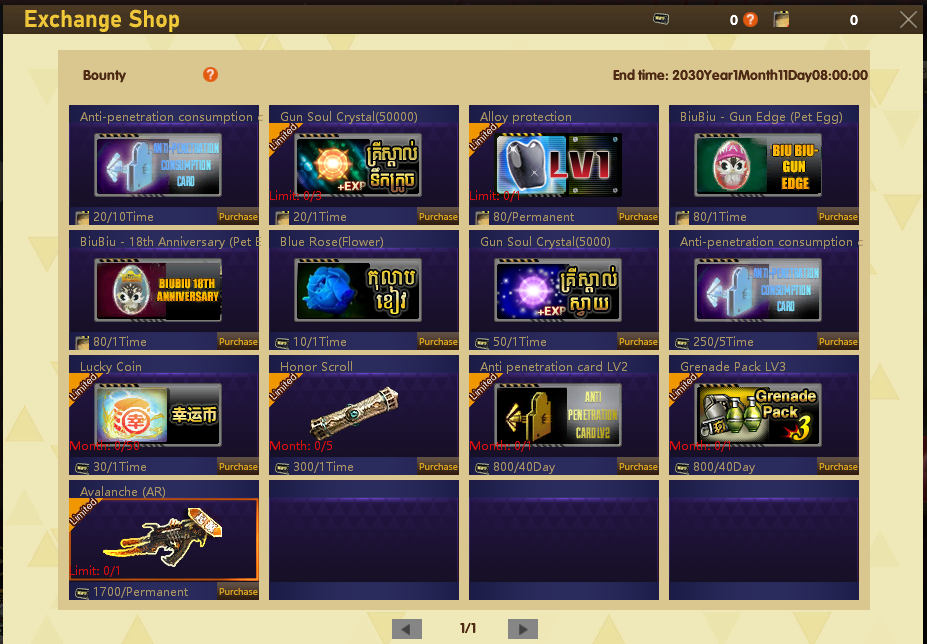 - [Daily Login Reward] Every night login at 19:00~23:00————Reward :1 Gun Soul Crystal (1000) + 10 Bounty Token (Exchange Point)